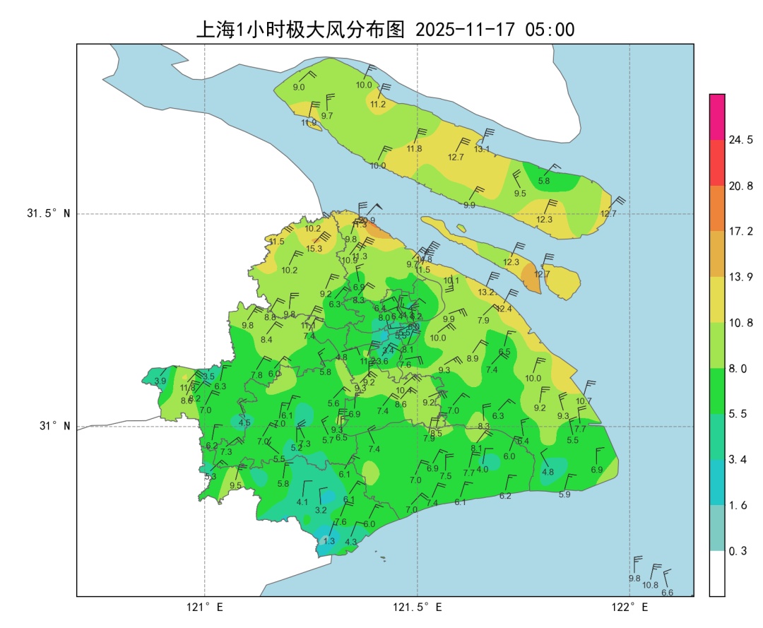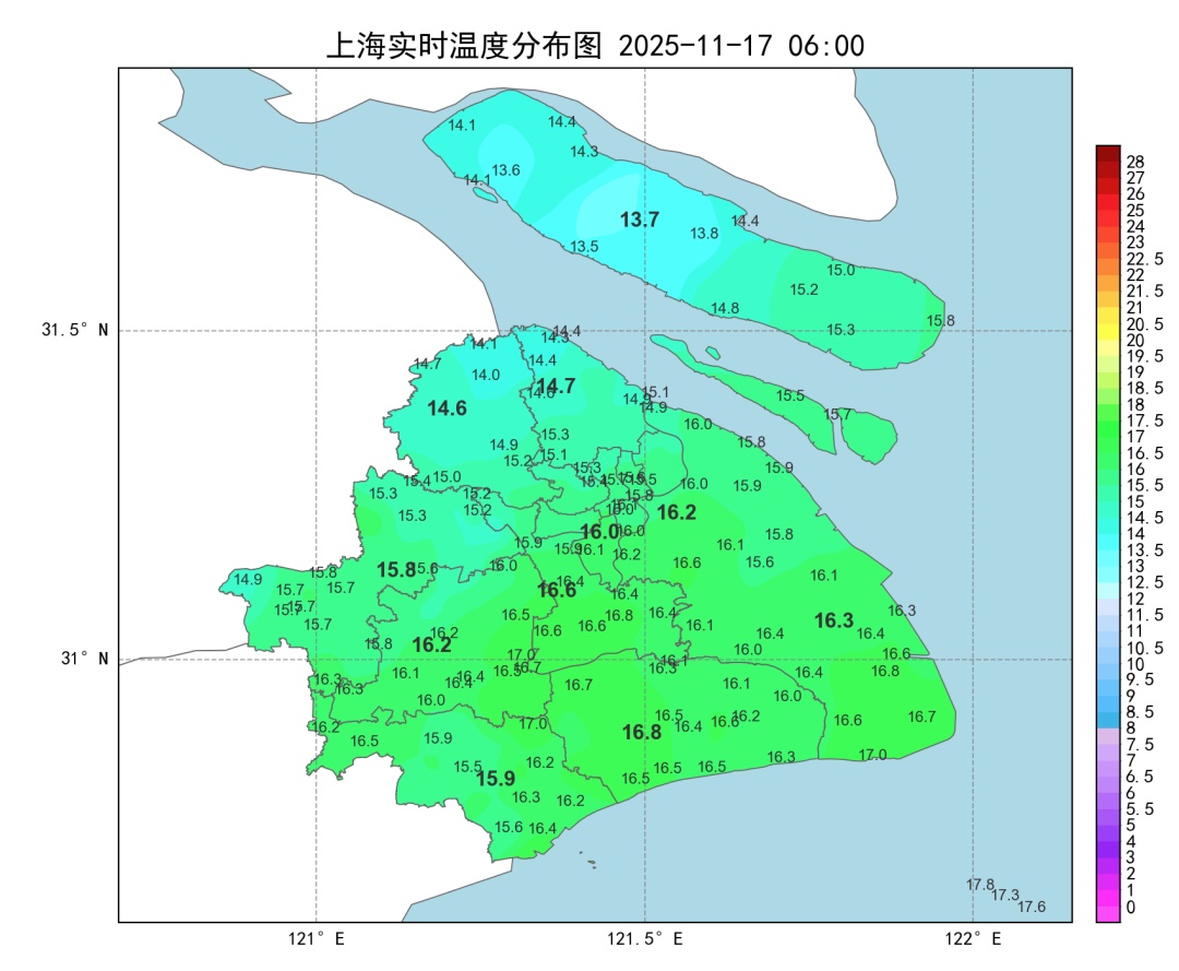 今天早间市区气温在16℃上下,郊区多在12~16℃。冷空气影响下白天气温将一路下探,到下班时段气温不足10℃。风力增大,偏北风5~6级阵风7级沿江沿海地区6级阵风7~8级。云系增多,阴到多云的天气为主,局部地区会有短时小雨。天气骤冷,请及时添衣保暖,注意防范持续大风。