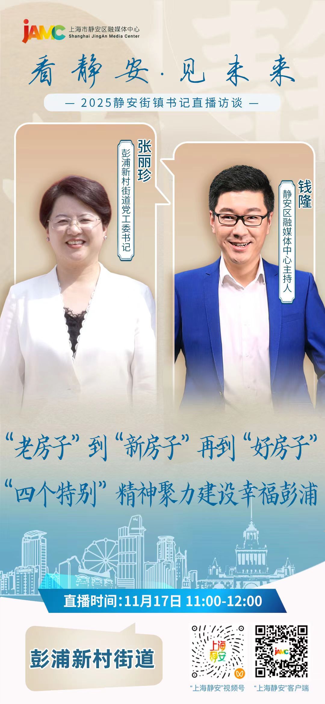 2025年是“十四五”收官、“十五五”谋划的关键年。静安区委宣传部、静安区融媒体中心推出“看静安·见未来”2025静安街镇书记直播访谈节目,以街镇视角带您探寻区域经济发展、民生改善等亮点,感受社区发展与民生温度。