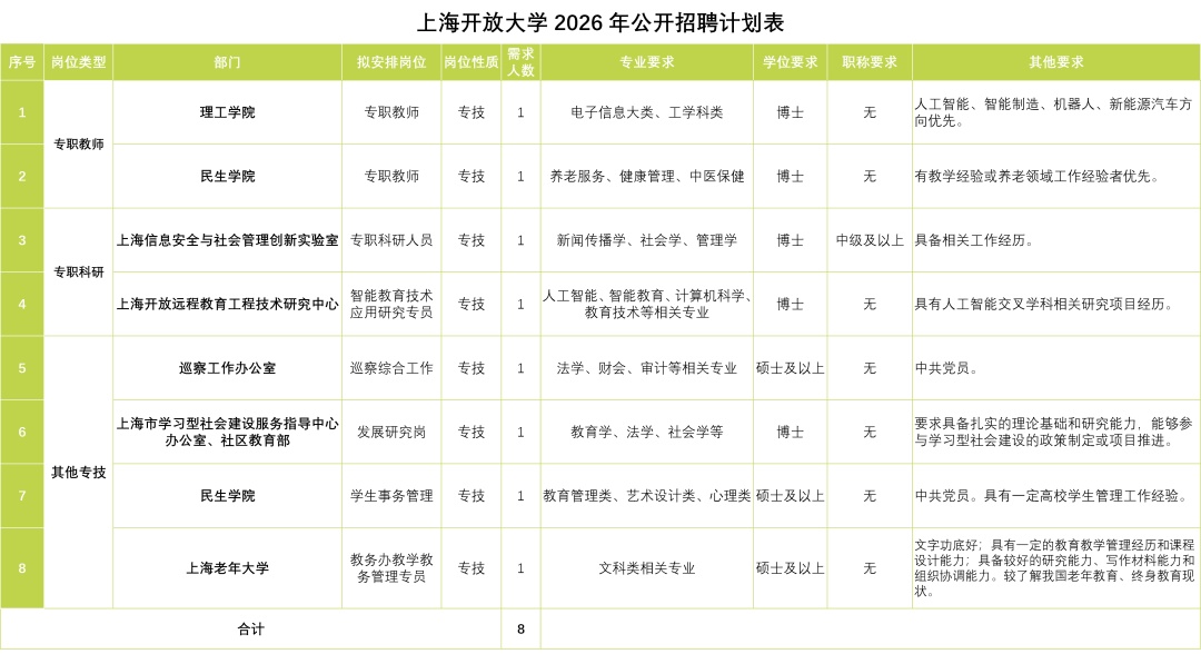 招聘岗位及职数 招聘专职教师岗2个、专职科研岗2个、其他专技岗4个,具体如下: 点击查看大图 二、