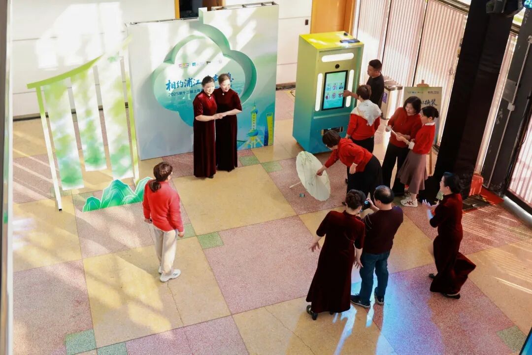 演出开幕前,浦江影剧院外已是一派火热景象。“AI戏曲换装”体验区前排起长队,市民只需扫码,就能一键“穿越”,变身戏曲中的“名角儿”。另一边,源自本地民俗文化IP“獬豸”的趣味知识问答,也吸引不少观众驻足参与。沪剧知识以轻松互动“软植入”,在欢声笑语中“种”进市民心里,让文化传承既有新意,也有温度。