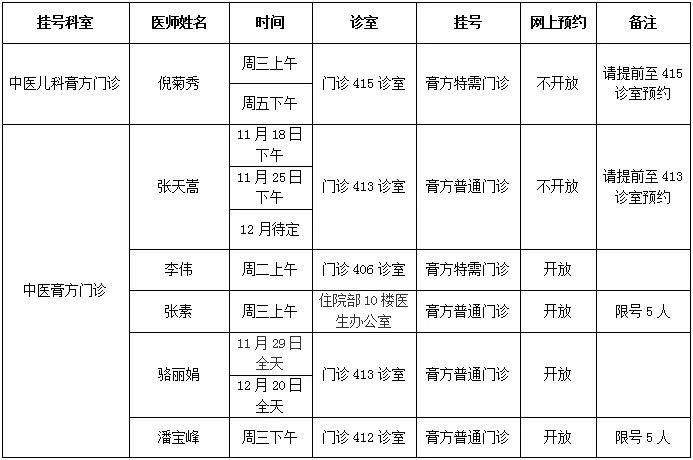 今年中医科膏方门诊涵盖儿科、内科、伤科、妇科等多个专业,由多位经验丰富的医师坐诊: