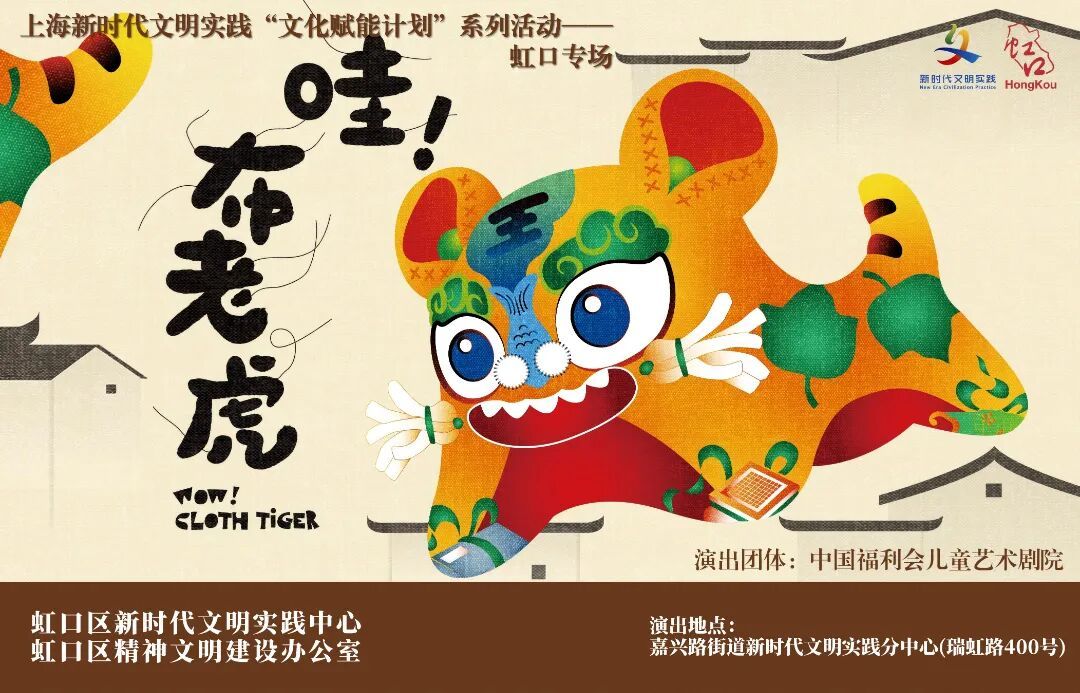 当传统的布老虎从记忆深处苏醒,一场关于“守护”与“追寻”的文明之旅就此启程。中福会儿艺新戏《哇!布老虎》来虹口啦,约上你的小伙伴和爸爸妈妈一起来看剧吧! 11月22日,由虹口区新时代文明实践中心、区文明办主办,嘉兴路街道新时代文明实践分中心承办的上海新时代文明实践“文化赋能计划”系列活动——虹口专场将和大家见面了。 国家院团倾情打造:中福会儿艺由宋庆龄女士1947年创办,是全国首家国家级专业儿童艺术院团,多次荣获“五个一工程”奖、文华奖等国家级大奖。 奇幻冒险温暖人心:跟随布老虎穿越时空,经历旧货店寻宝、鼠王嫁女、花谷危机等奇幻旅程,在欢笑与感动中体会守护的真谛。 传统文化现代表达:汤婆子、团扇、八仙桌等传统物件“活”起来,用创意方式传承中华优秀传统文化。 演出结束后,我们还将特别设置: •【合影环节】与剧中传统物件合影留,留住童年回忆 •【记忆绘画】用画笔记录剧中最打动你的场景,留住温暖瞬间