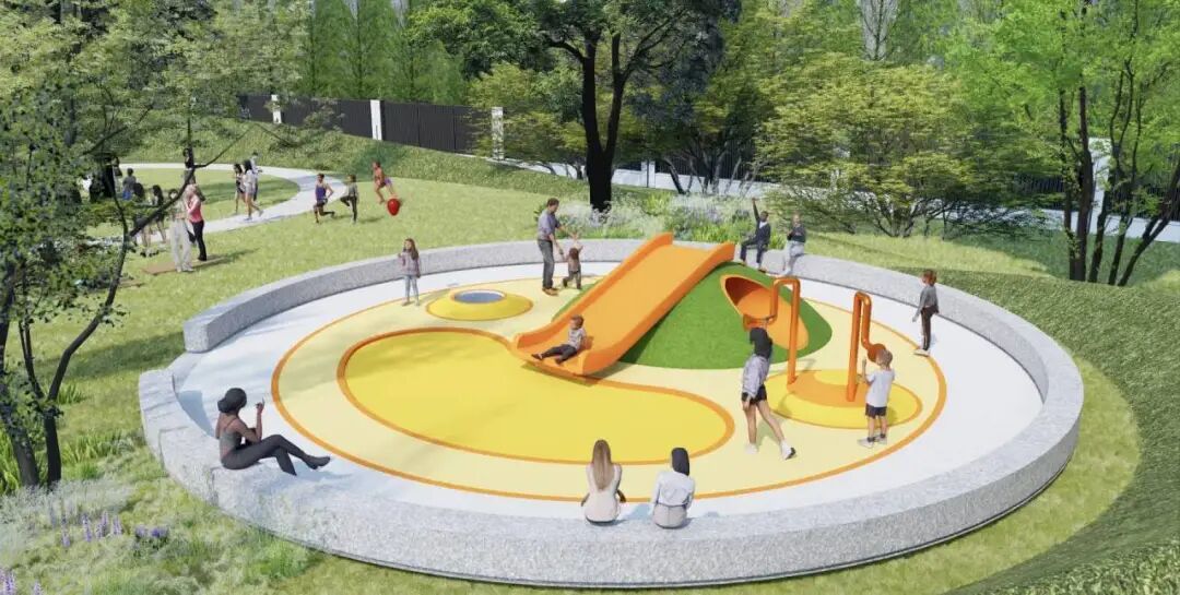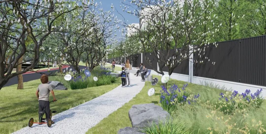 规划以“玉兰主题、全龄体验、生态互动”三大核心,精心布局三大功能片区:核心区的玉兰广场,作为视觉与活动的焦点,通过主题铺装、艺术彩绘与芳香疗愈植物的综合设计,营造出观赏与休憩兼具的沉浸式场所;蜿蜒贯穿园区的慢行林荫绿道,不仅满足了市民跑步、骑行的日常健身需求,更串联起玉兰科普知识大道与生态净水示范的雨水花园,沿途设置的互动科普装置,让市民在移步换景间感知自然奥秘;位于北侧的社区活力区,利用开阔场地,灵活设置了弹性活动空间与符合儿童安全标准的游乐设施,未来既可举办主题市集、文化展演等社区活动,也为亲子家庭提供了温馨趣味的互动平台。
