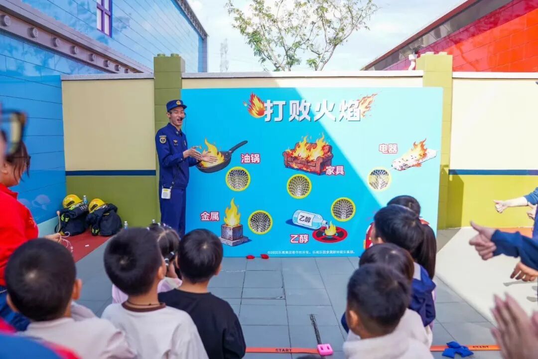 在 “打败火焰” 环节,小朋友们通过轻松愉快的游戏,学会了不少消防知识,收获满满。参与游戏的小朋友谢锟表示,自己在活动中学习到了不同物品起火后的灭火方式。