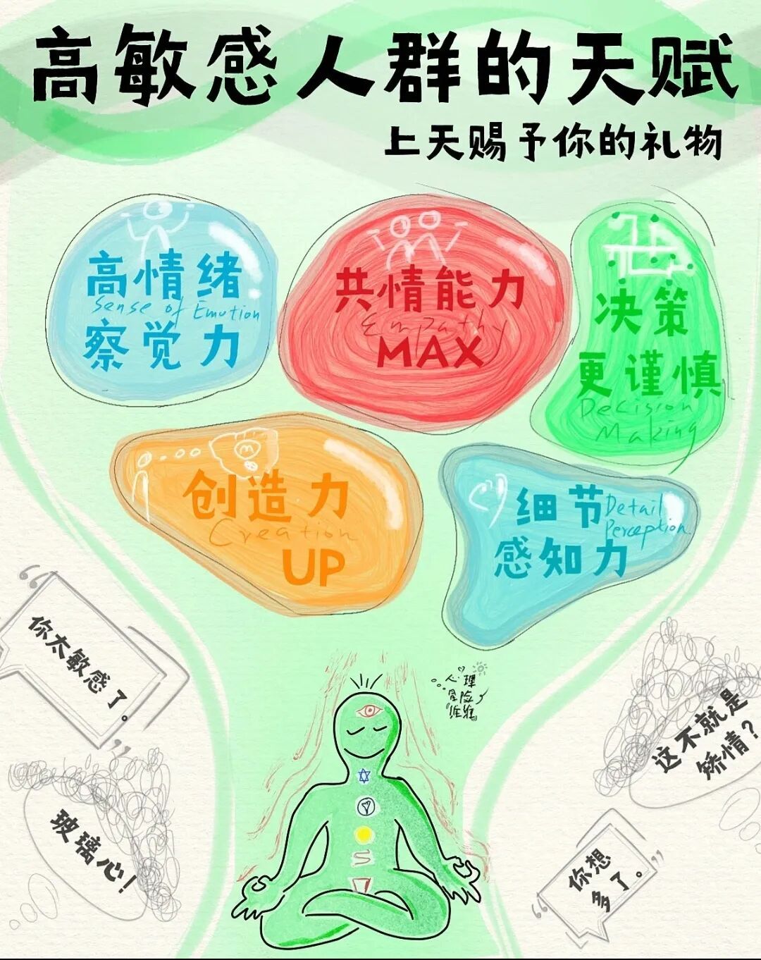 像小张这样的高敏感并非天生的缺陷,而是一种独特的气质与人格特质。这类人群天生拥有特殊的神经系统,能更深入地感知和处理内外信息,同时具备更为敏锐的洞察力与觉察力。