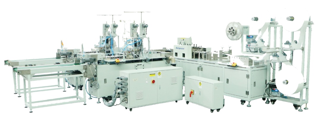 一次性医用口罩全自动生产线由三大核心设备组成:本体机负责原料多层复合、压合与冲切成型;耳带焊接机通过超声波技术自动焊接耳带;包装机完成自动计数与封装。整线通过PLC控制,高度自动化,高效稳定,配套灭菌及检测设备,以确保产品安全合规。