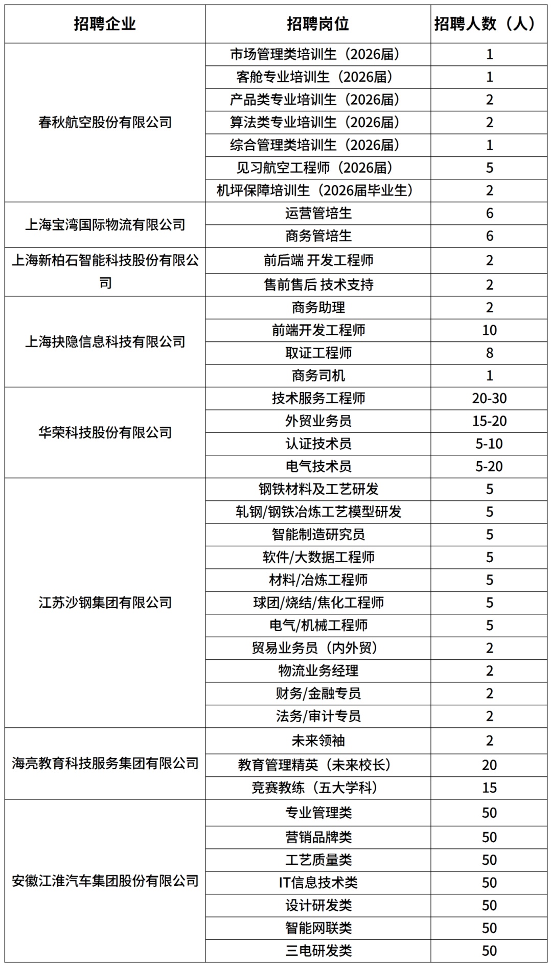 除了现场面对面的招聘,本次活动还将邀请春秋航空股份有限公司、上海宝湾国际物流有限公司、上海新柏石智能科技股份有限公司、上海抉隐信息科技有限公司、华荣科技股份有限公司、江苏沙钢集团有限公司、海亮教育科技服务集团有限公司、安徽江淮汽车集团股份有限公司8家优质企业开展直播带岗活动,通过“上海人社”官方抖音号、微信视频号、哔哩哔哩平台同步直播,职等你来!