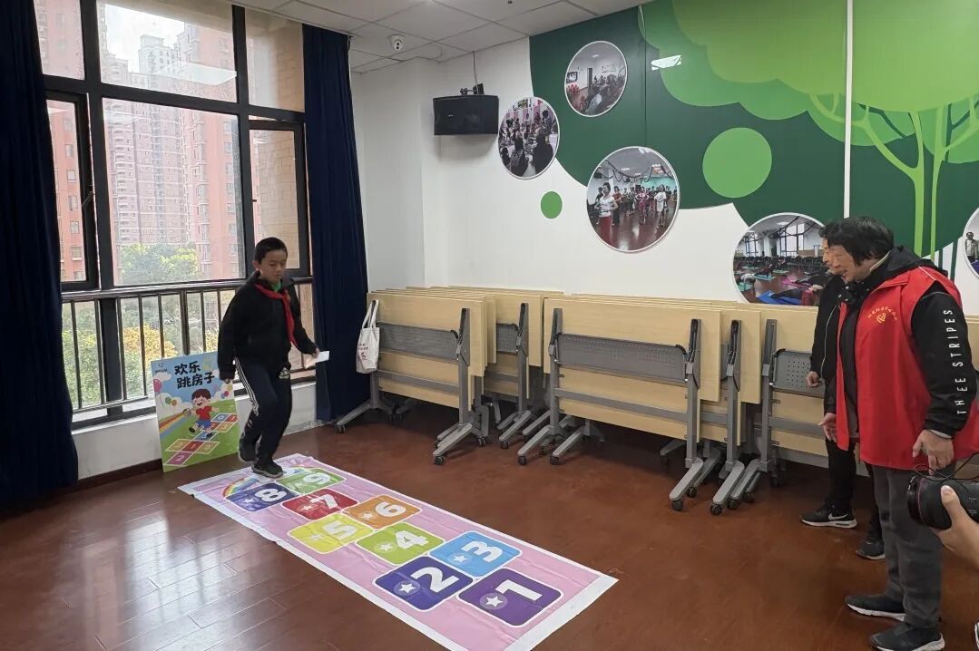 活动伊始,居民凭入场券签到领取集章卡,志愿者引导他们参加游园游戏环节。六个传统与互动类项目兼顾趣味性与包容性:投壶前,老人站在1米线外投中3支箭,重温童年记忆;套圈游戏里,孩子踮脚扔圈,偶尔套中便蹦跳欢呼;跳房子摊位在彩绘的“房子”地毯上,青少年单脚轻盈跳跃,老人慢走格子均得章;夹弹珠游戏中,孩子1分钟夹起10颗弹珠,老人1分30秒夹起8颗,都收获了掌声。“睦邻知识我知道”让居民通过答题了解社区,“现场版睦邻议事厅”则收集了“增加亲子活动”“开设弄堂文化课程”等建议,写满对社区的期待。