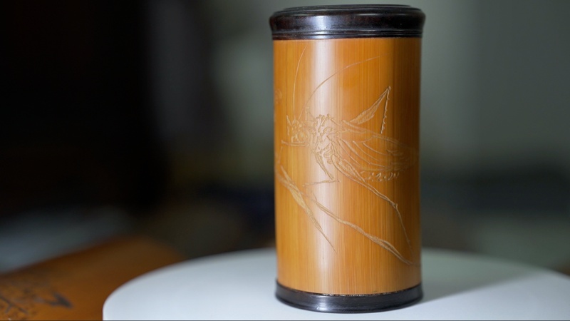 这看似简单的线条,却是竹刻功力的试金石,没有十年以上的潜心打磨,绝难刻出这般“呼之欲出”的鲜活神韵。他的虫草纹,既延续了徐派竹刻“以刀摹笔”的细腻,又以生活中观察到的生灵意趣为魂,让传统竹刻跳出古作窠臼,多了几分烟火气与生命力。