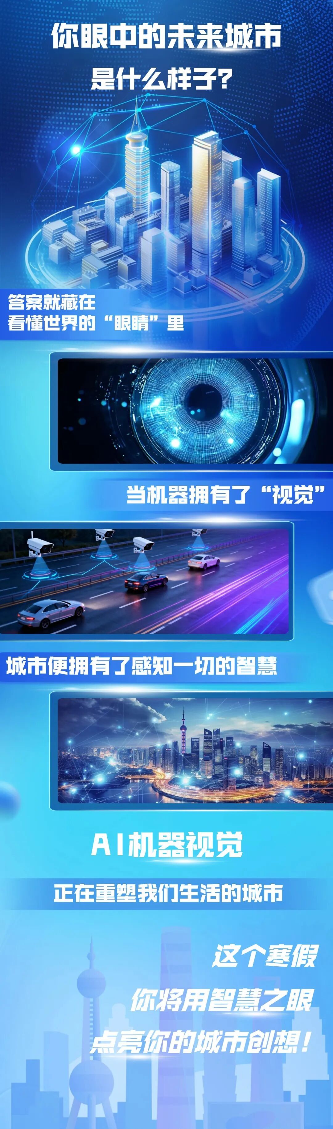 “AI 智慧城市赋能计划” 正式启动,面向青少年招募 “AI城市创想官”,在 4 天极限特训中,你将与瞳翼博士以及AI助手小视一起学习掌握 AI 视觉核心原理,针对城市运营中的真实痛点设计专属 AI 视觉助手,为城市建设贡献少年智慧,最终通过创投路演展示你的解决方案。