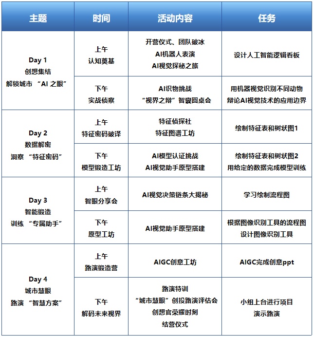 我们邀请有志于探索科技前沿的青少年,化身 “AI城市创想官”,通过真实场景驱动的项目制学习,经历从基础认知、数据采集、模型训练、产品开发到路演展示的完整AI产品生命周期,实现从AI认知到AI创造的思维跃迁,在人机交互场景中全方位提升技术能力、逻辑思维、创新意识、协作能力。