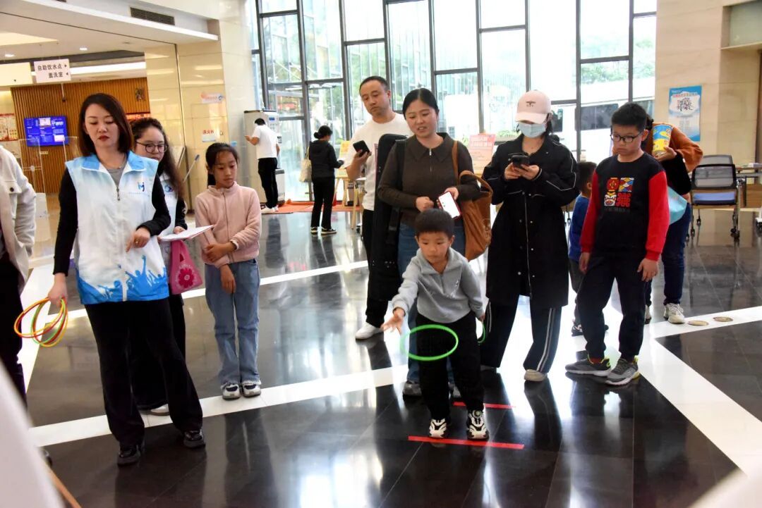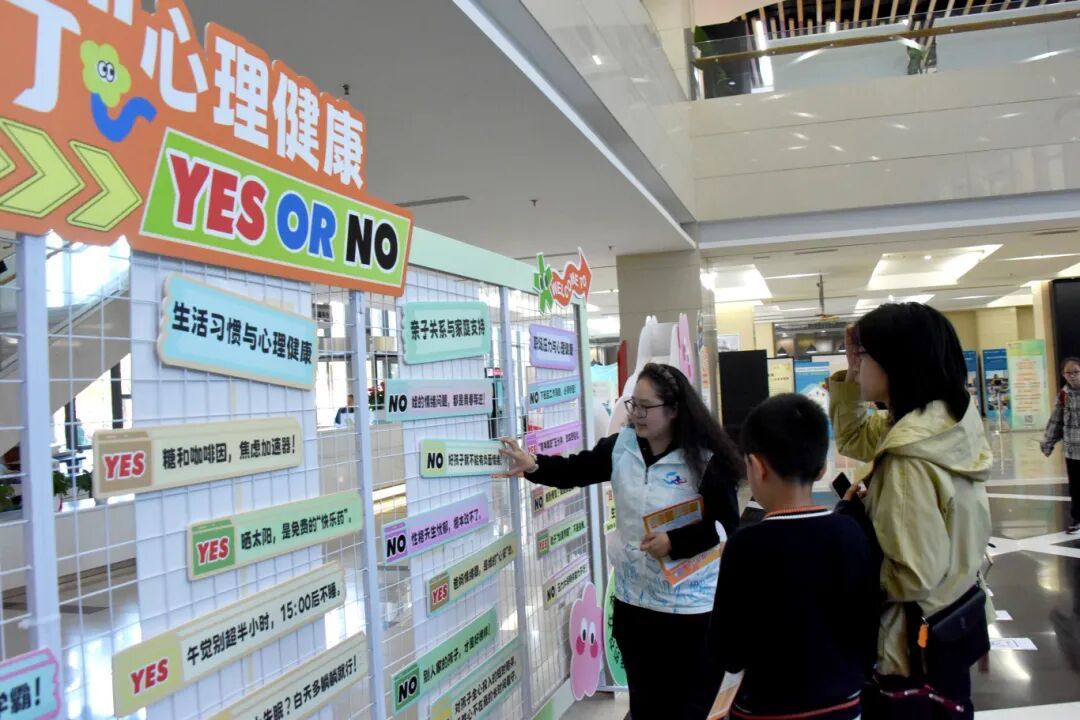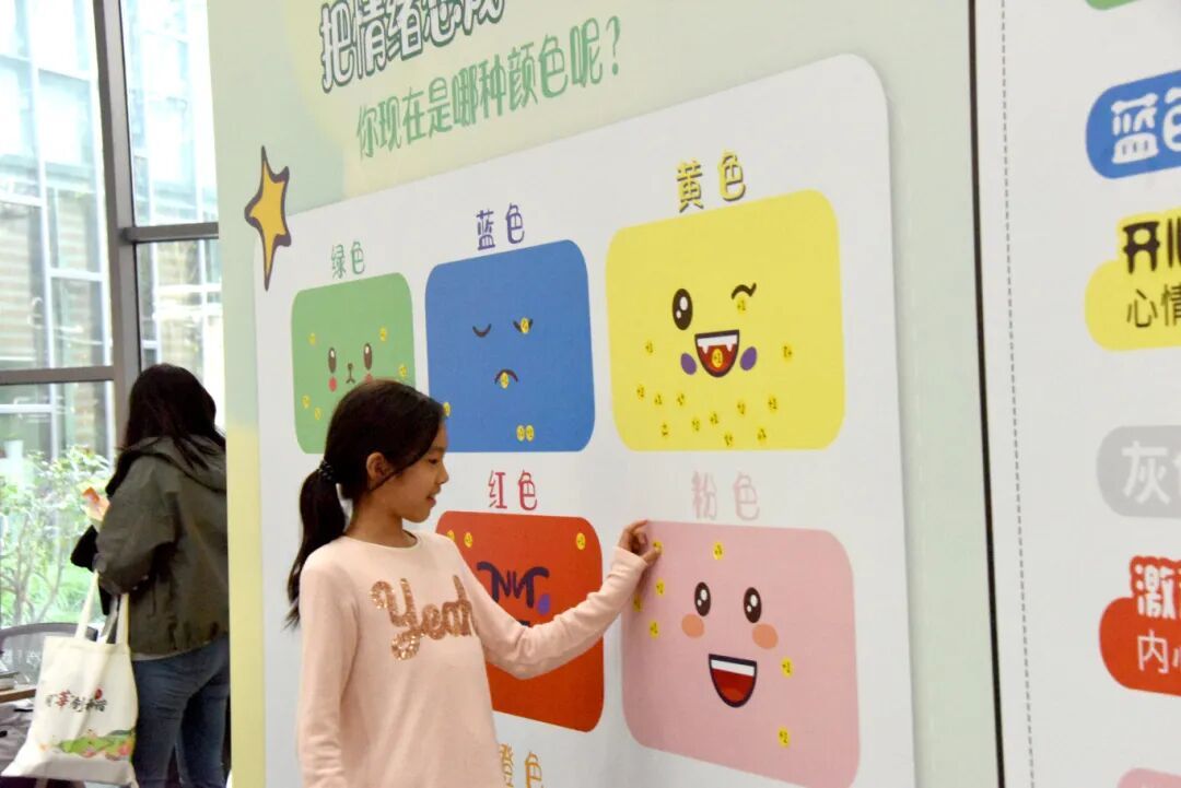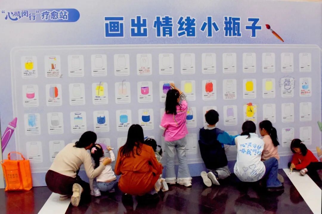 一楼大厅内,精心布置的“心晴闵行”疗愈站主题活动区也吸引了众多大小朋友参与。