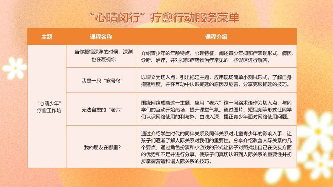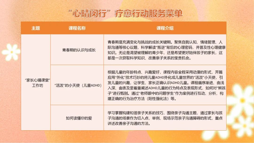 2025—2026年度“心晴闵行”疗愈行动服务菜单