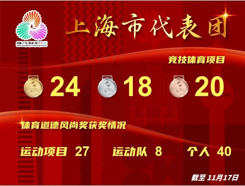 第十五届全运会开幕后的第八个比赛日,上海市代表团在游泳、击剑等项目中都有斩获,共收获1金2银2铜,其中唐钱婷先后获得女子50米蛙泳金牌和女子4×100米混合泳接力决赛银牌。