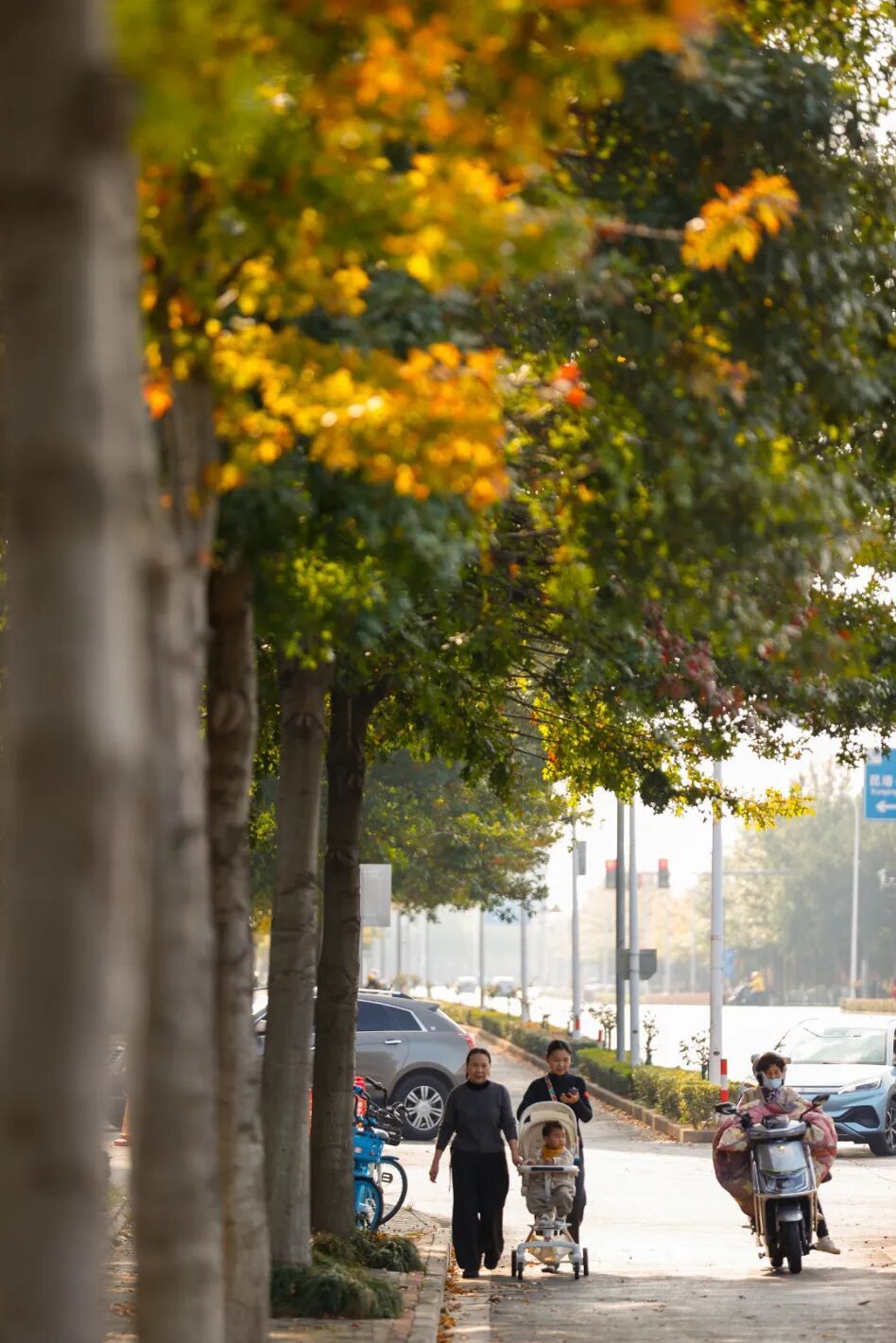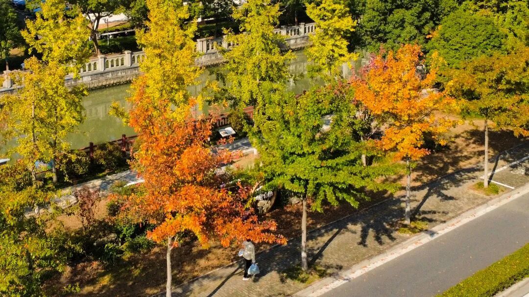 绿是夏日的余韵,黄是秋风的信笺,红是霜寒的赠礼。深秋,中昆路两旁的娜塔栎披上三色衣,宛若大自然的红绿灯,静静诉说季节的更迭。