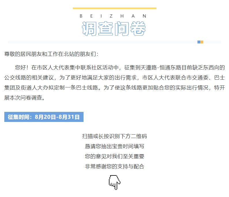 今年8月,“爱北站”公众号上线了一份定制巴士问卷调查,居民动动手指就能投票选择心仪的站点。