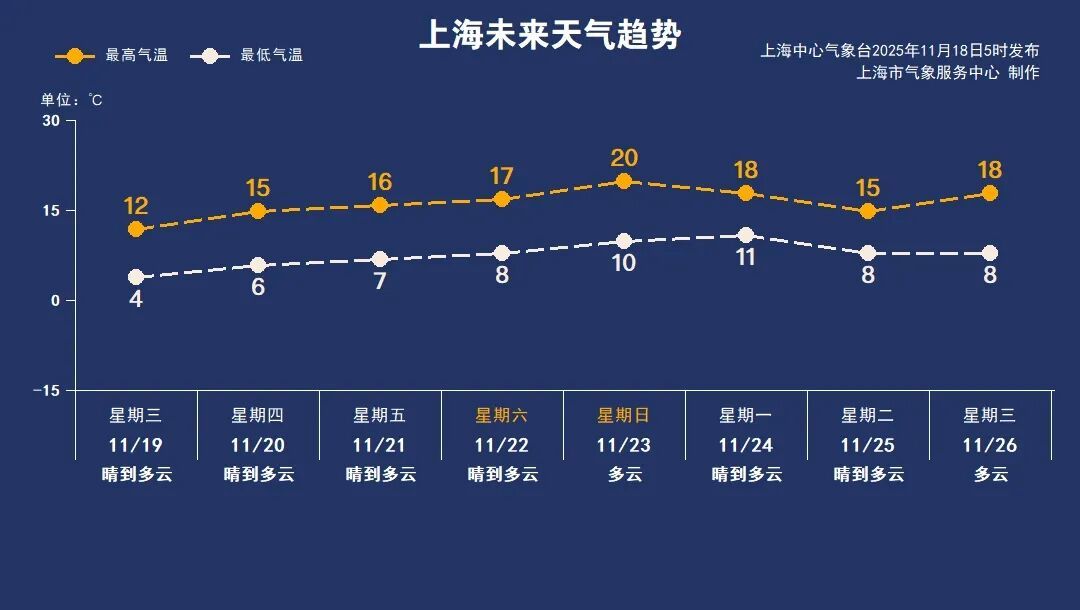 明后天受辐射降温影响,早晨气温较低,市区在4~6℃,郊区在0~2℃,局部有薄冰。白天天气晴好,气温稳中有升,预计周日最高气温可升至20℃,秋高气爽的好天气回归。