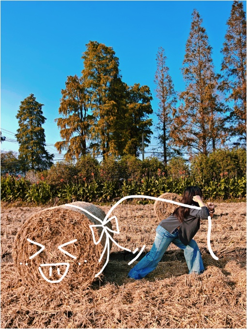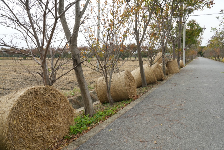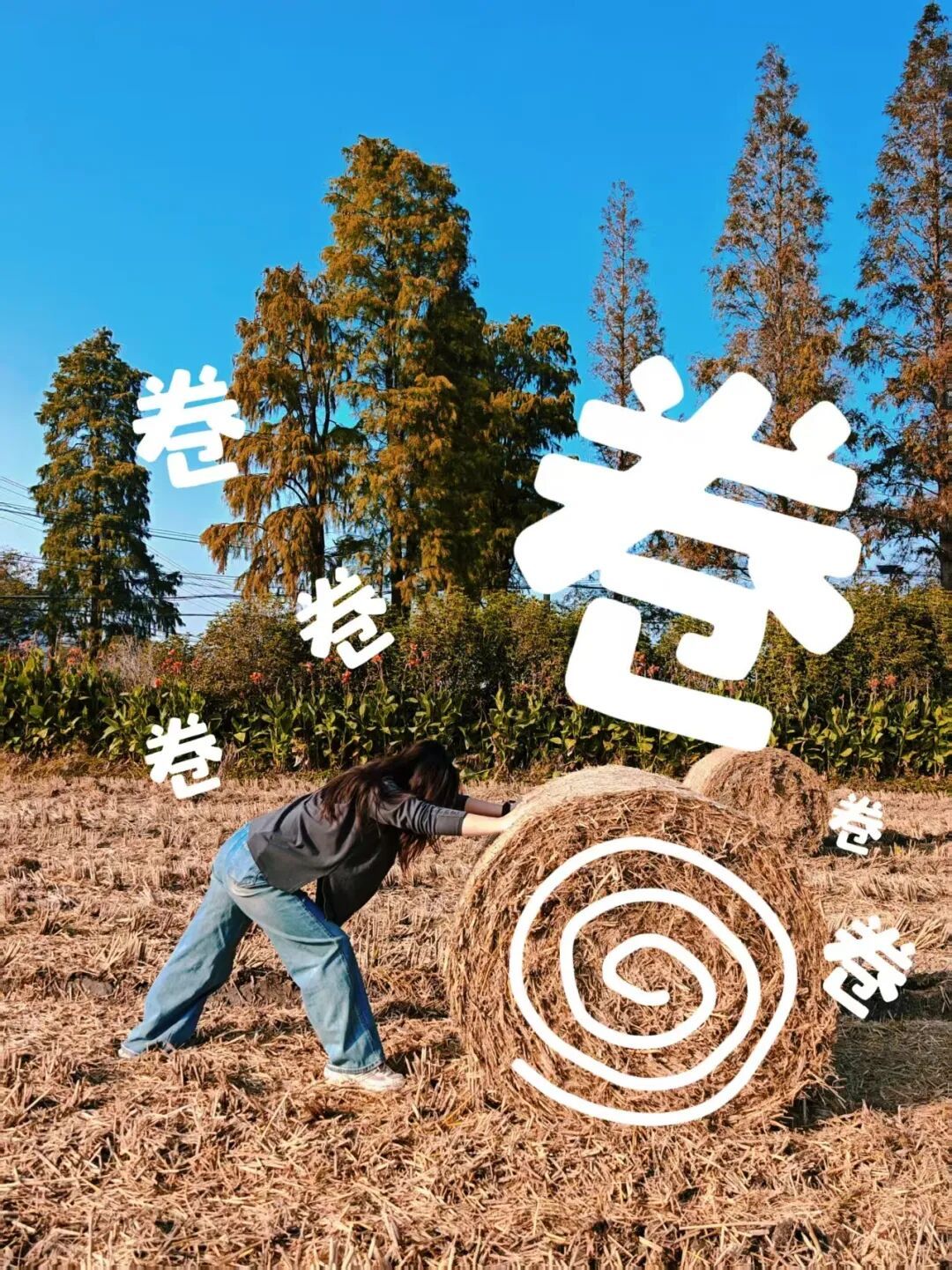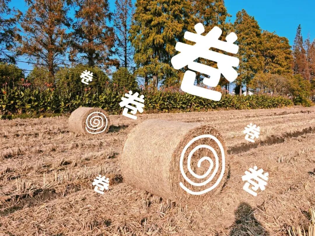 最近,练塘镇徐练村的稻田里悄悄“长”出了一些憨态可掬的“瑞士卷”——它们不是甜点,而是村民们用稻草精心滚制而成的创意稻草卷!