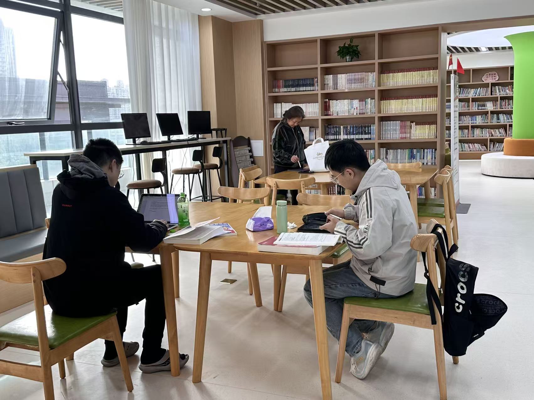 街道图书馆也是居民的热门打卡点,周末单日人流量超100人次。“八点半就有居民等着开门了!”工作人员朱丽勤说,据她观察,不少居民一早来自习,中午去楼下食堂吃个饭,下午再接着沉浸式阅读,一整天都泡在楼里。今年,街道还依托广富林阅读推广联盟开展主题活动,邀请社区居民共赴书香之约。此外,在三楼还设有文体室、儿童友好城市阅读新空间等功能区,实现了“一楼多能、全龄共享”。