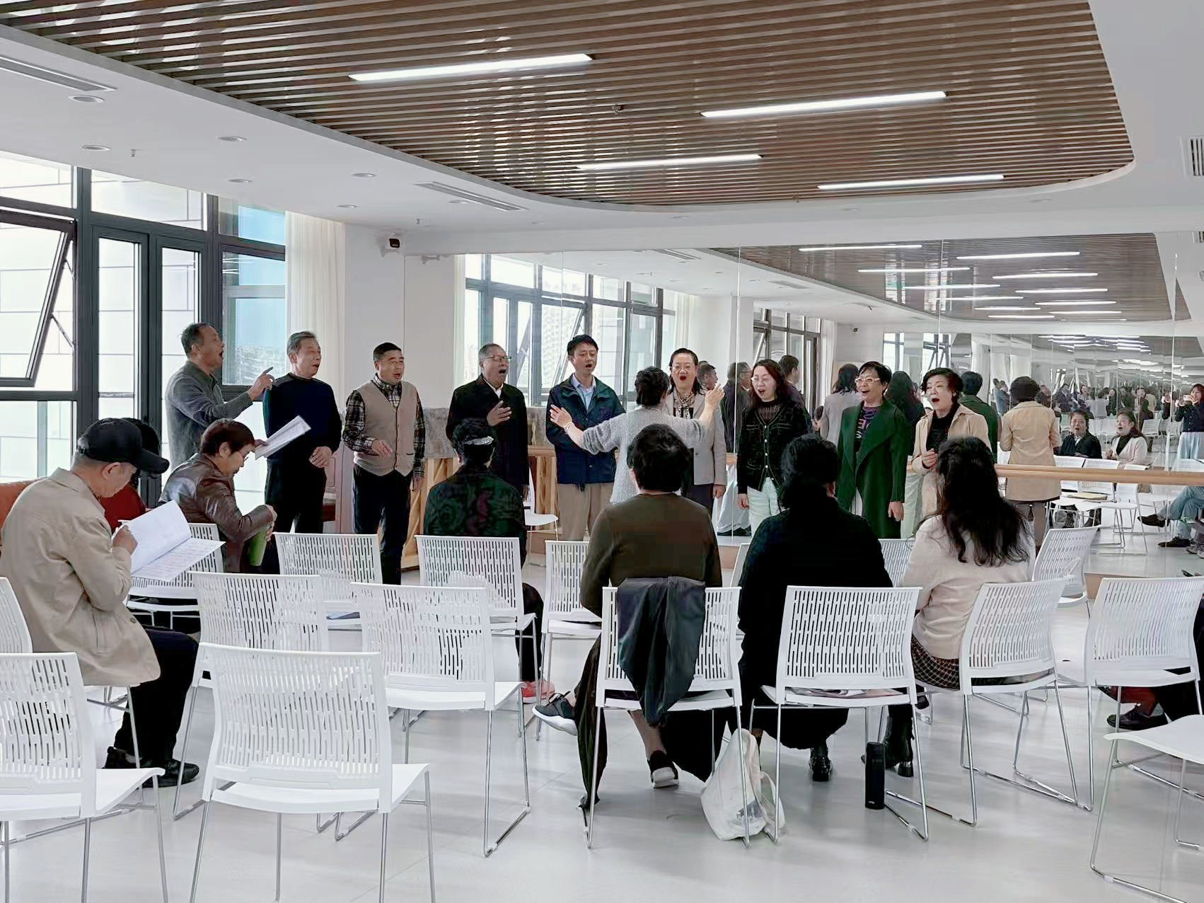 街道合唱团正在文体活动室排练