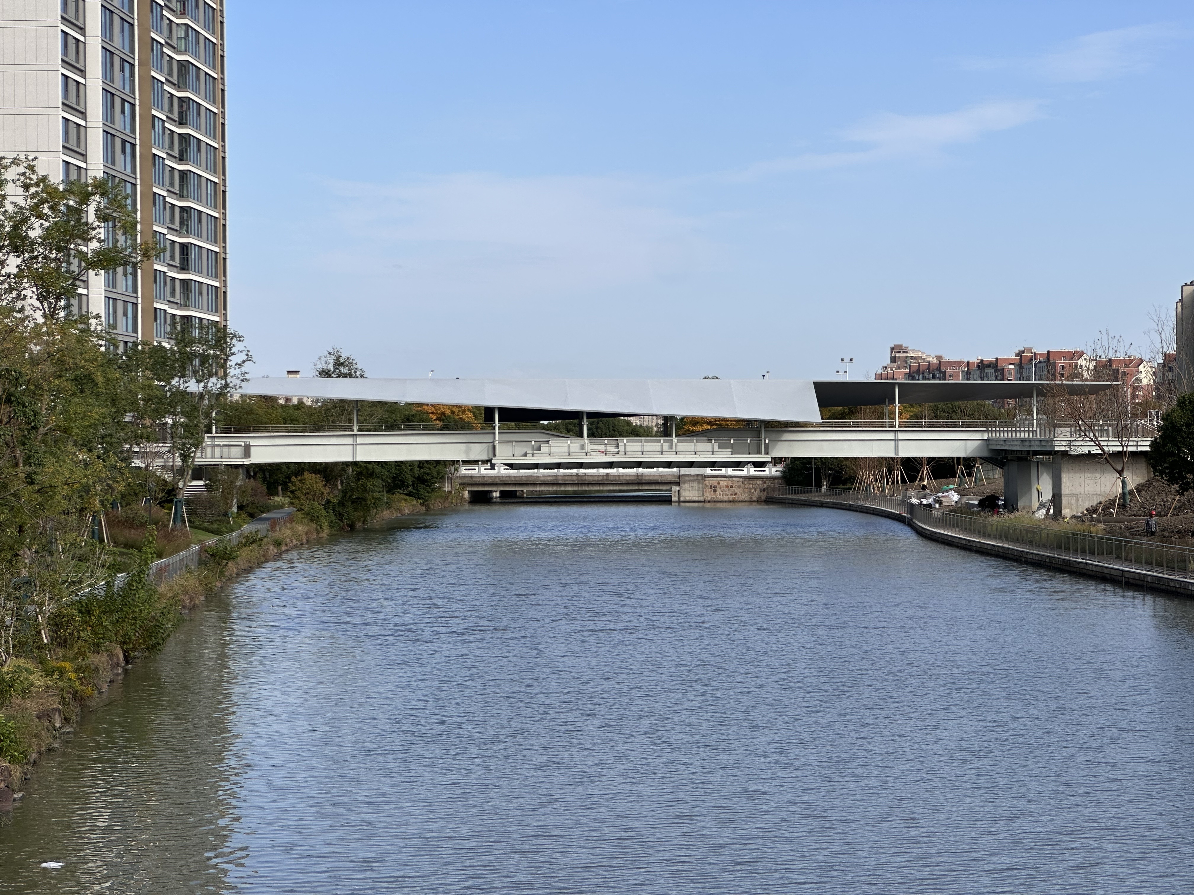 随着郊野公园配套设施升级项目的落地,滨水生态空间的打造项目也在推进过程中。作为辖区东西向的主干道,银河的滨水景观建设遵循“生态、低碳、智慧”理念,待启用的人行景观桥则是实现这一目标的核心纽带。这座连接银河两岸的桥梁,远不只是一座“便民桥”——未来居民将通过它直达银泽路。更重要的是,它将与周边同步打造的绿化、园林等配套一同构成兼具通行、健身、休闲属性的滨水空间。