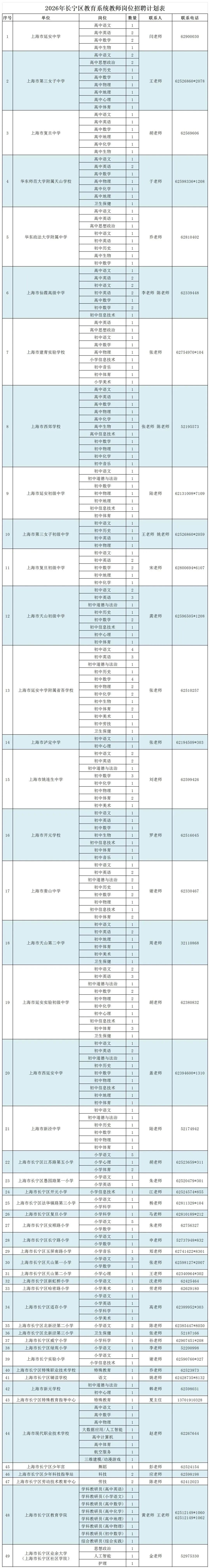 附:2026年长宁区教育系统教师岗位招聘计划表