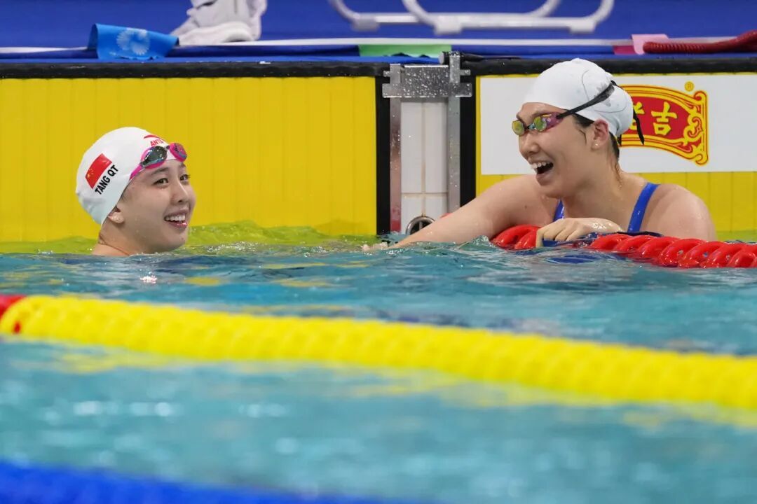 除个人项目外,她还肩负上海队三项接力赛事重任,从短距离冲刺到中距离耐力考验,密集参赛既彰显了扎实的技术储备,也巩固了其团队核心地位。最终,她所在的队伍在4×100米混合接力中创下历史最好成绩,赛后她坦言:“我经验更丰富,所以我这一棒特别关键,希望能尽我所能给年轻队员创造空间,让他们放松发挥。”正是她在第二棒的拼命追赶,给后面两棒年轻的队友奠定了登上领奖台的基础,并且帮助上海队创造了这个项目的最好成绩。“我对自己很满意。”唐钱婷说。