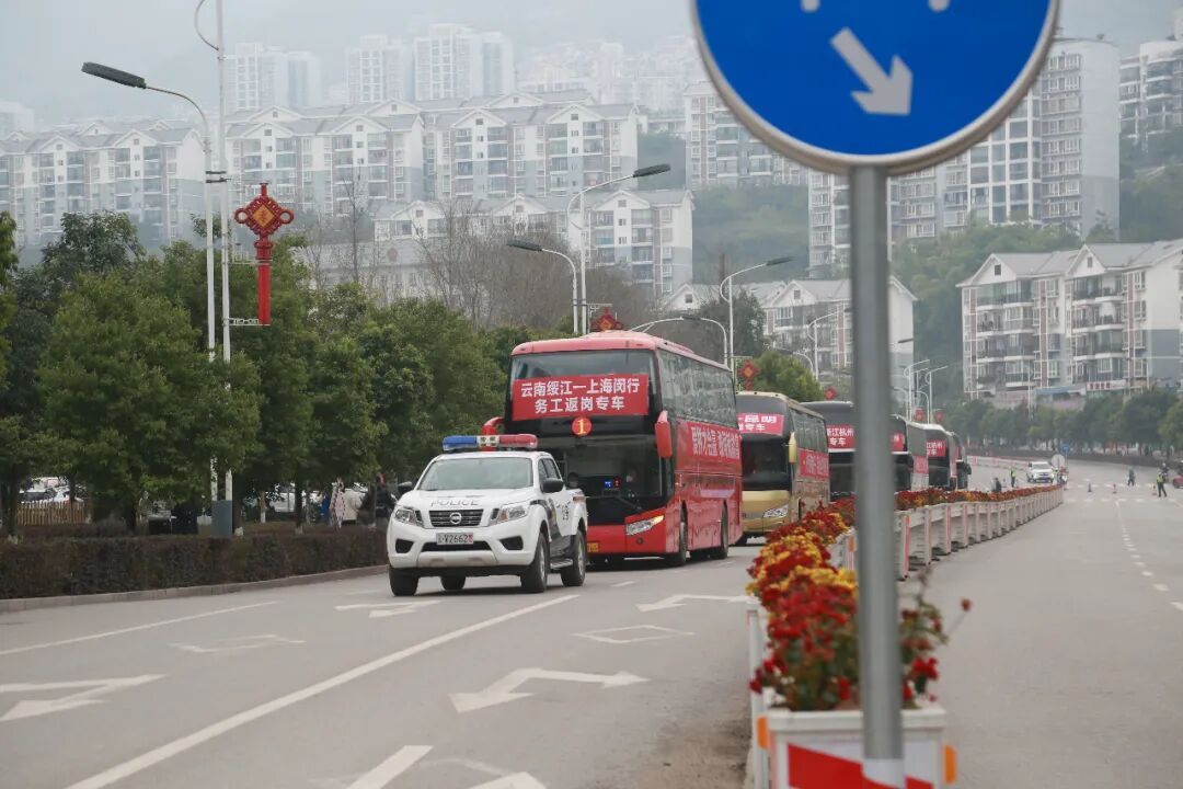 云南绥江农村劳动力乘坐返岗务工专车外出务工
