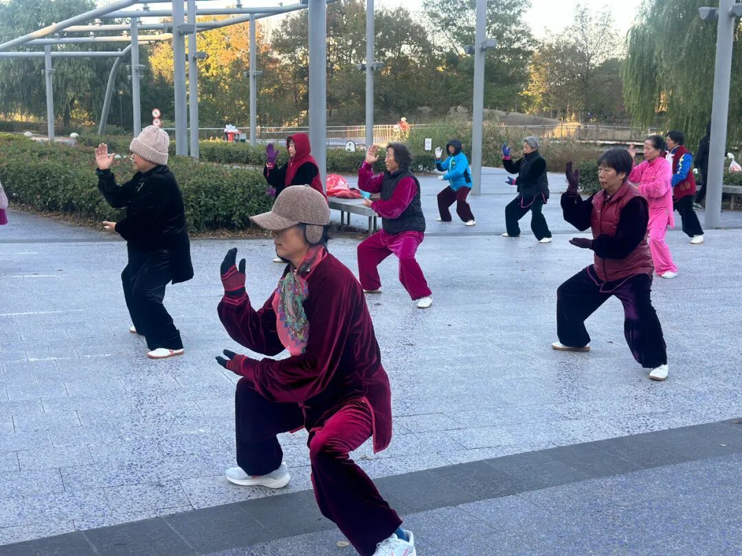 几名晨练的阿姨,太极招式依旧行云流水,但基本都戴上了厚厚的毛线手套。市民靡建莲一边缓缓推手,一边对记者说:“拳打起来,身体热乎了,但这手露在外面也冷啊,所以今天特意加了手套。”