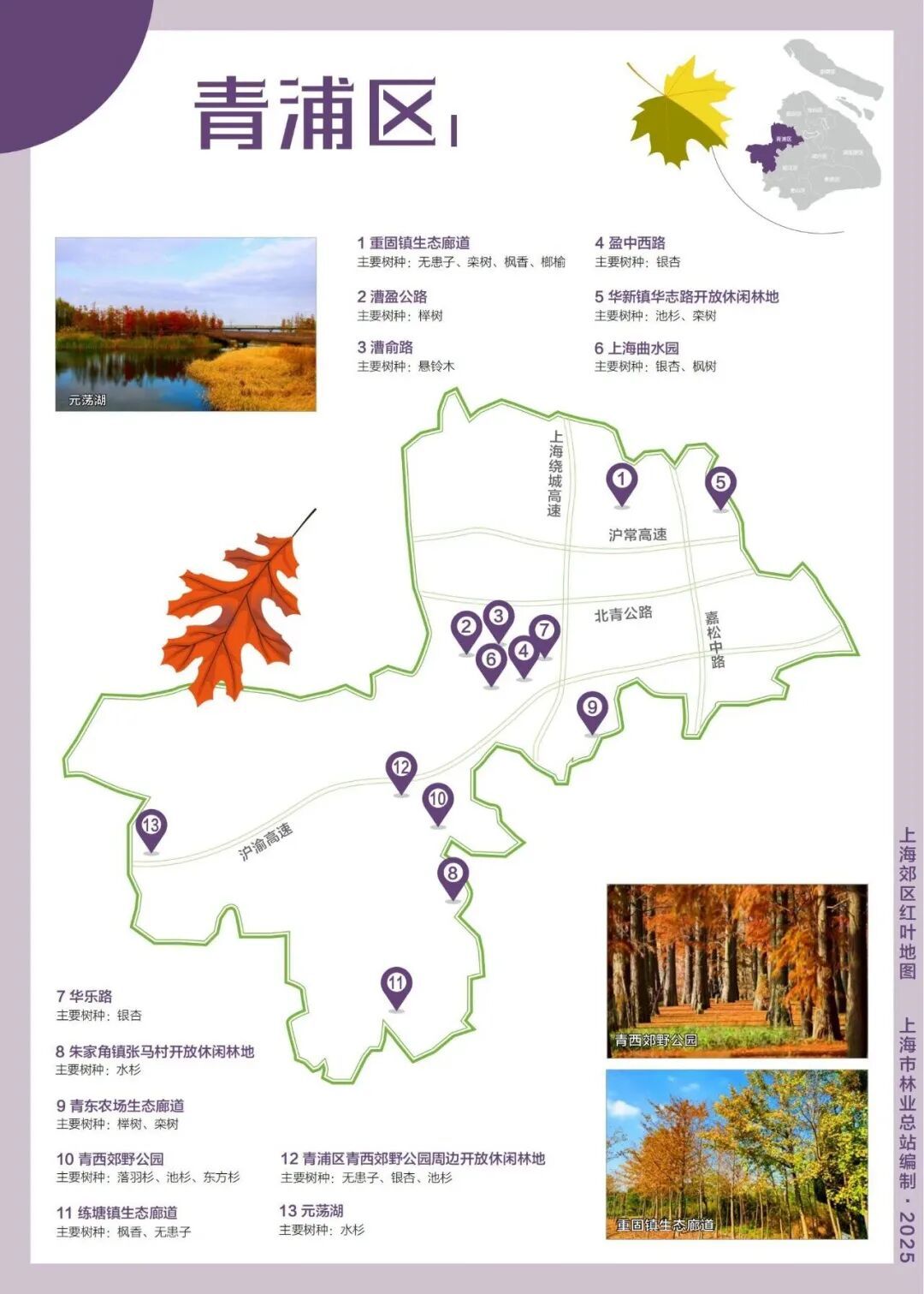 今年的上海郊区红叶地图,覆盖9个郊区的多元观赏点,既有经典地标焕新颜,也有小众秘境待探索,按区提供赏秋指南。