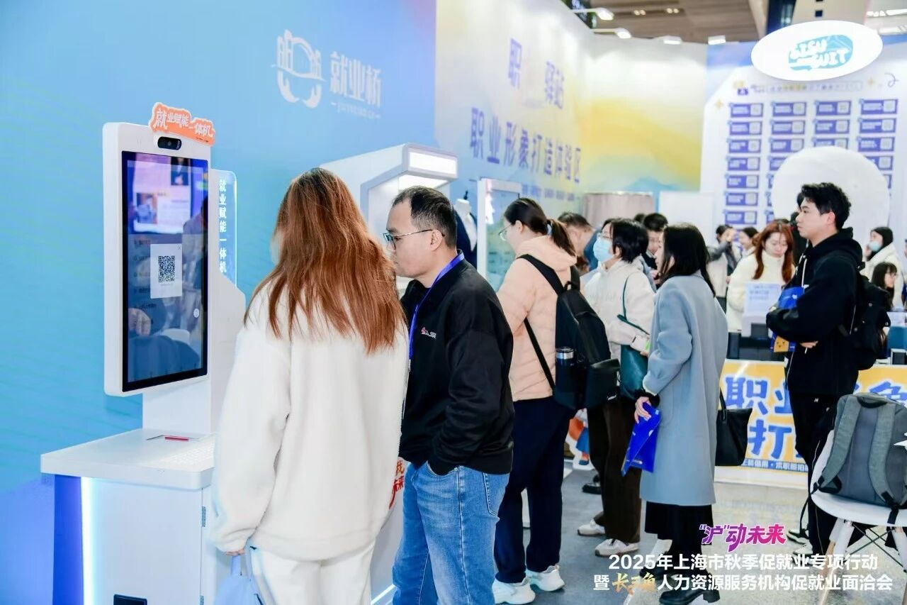 招聘现场设置的“AI体验区”集中展示多类智能终端设备,包括AI简历优化打印一体机、AI面试屏与AI生涯规划一体机,覆盖从简历撰写、职业规划到模拟面试的求职全流程。