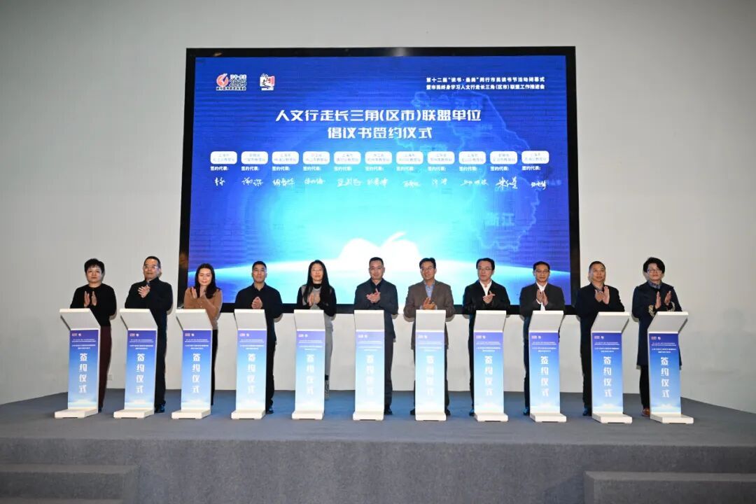 现场还举行了“人文行走长三角(区市)联盟”倡议书宣读、签约仪式。上海市普陀区、杨浦区、闵行区、金山区、松江区、青浦区,以及江苏省苏州市,浙江省杭州市、舟山市,安徽省芜湖市、六安市等11地教育局代表共同上台签署合作倡议书。各单位将在“坚持守正创新,共建发展平台”“坚持特色发展,共谱合作新篇”等方面加强协作,比如:跨省市共建学习圈与主题路线,定期举办经验交流研讨会;开发特色主题学习线路,组建跨省市导学团队,构建具有长三角特色的城市人文教育理论体系等。