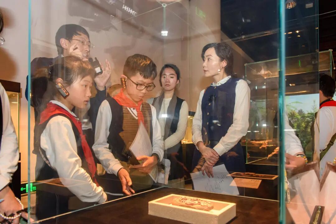 在现场,中国科学院古脊椎动物与古人类研究所博士、华东师范大学生命科学学院博士生导师王烁作为“科学家导师”,负责将最前沿的古生物学知识与化石发现故事娓娓道来;学校的学科教师则作为“教学设计师”,帮助学生将现场观察与课内所学精准链接。从“中国第一龙”许氏禄丰龙背后的爱国科学家故事,到五彩冠龙与北美亲戚的跨洋联系,再到“英良贝贝”胚胎化石引发的对生命与环境的思考,这种“双师”协作,实现了教育方法与科学的深度结合,使学生在掌握知识的同时,更感受到了科学精神的传承与力量。