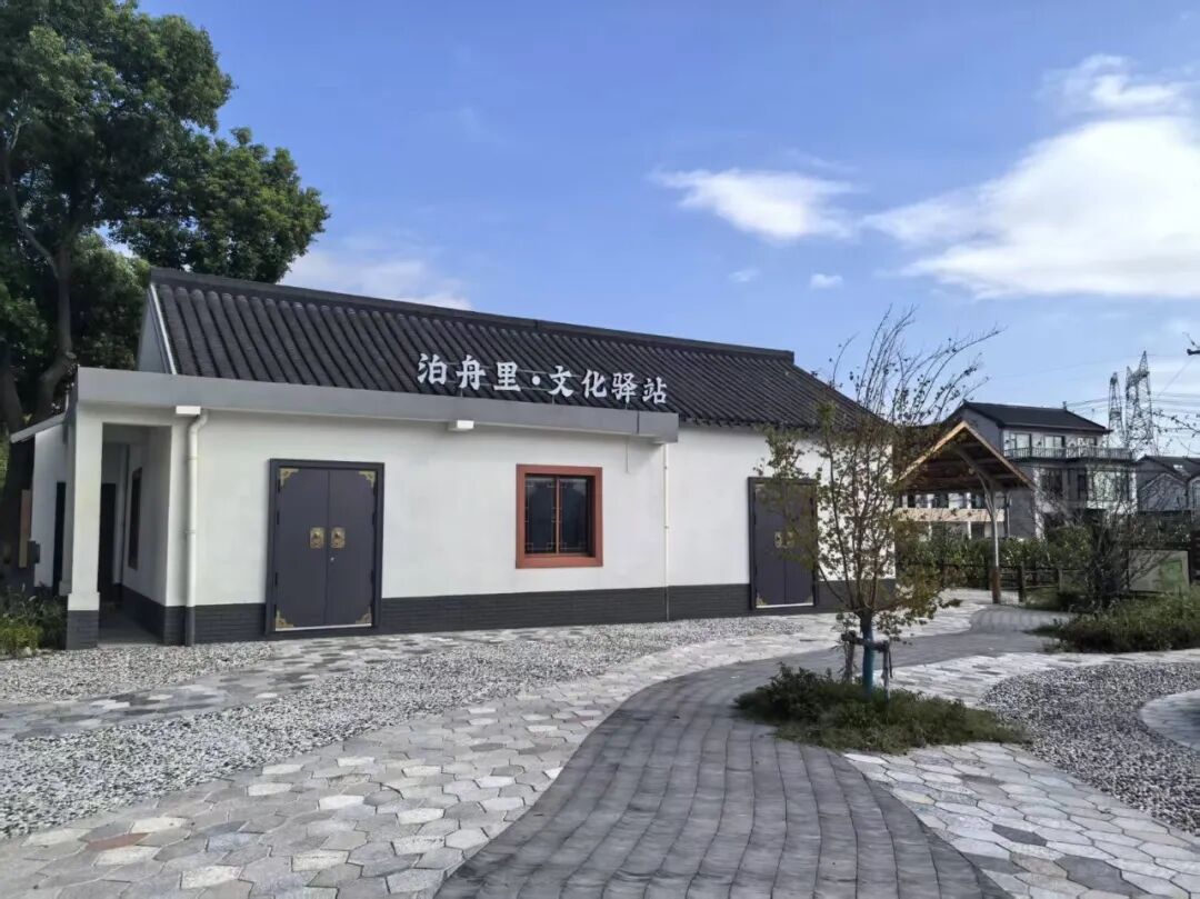 东勤村的历史文化底蕴远不止于此。村内通过对落戗屋、四岔桥、南瑞桥等物质文化基础,舞草龙、“江南丝竹”、叶榭竹编等非遗资源进行系统梳理与活化利用,积极打造环境优美、底蕴深厚的乡村休闲空间。四岔桥、南瑞桥等历史建筑获得了修缮,百年老宅落戗屋被赋予“课堂间”党群服务点的新功能,新建的“泊舟里”文化驿站则集中展示东勤村的非物质文化遗产、产业发展历程、革命先辈红色精神与乡贤事迹,成为乡村文化传承与宣传的重要窗口。