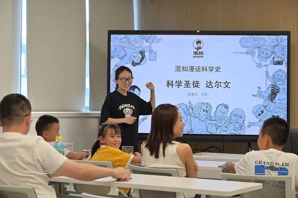 “原来学数理化还能这么有趣!”周末的重固镇图书馆内,一堂漫话科学史讲座打破了大家对于“科学=枯燥”的刻板印象——老师把科学家的探索故事讲得像动画片一样精彩,连平时觉得“理科难”的大人都能跟着沉浸进去,和孩子们一起解锁自己的“科学小天赋”。