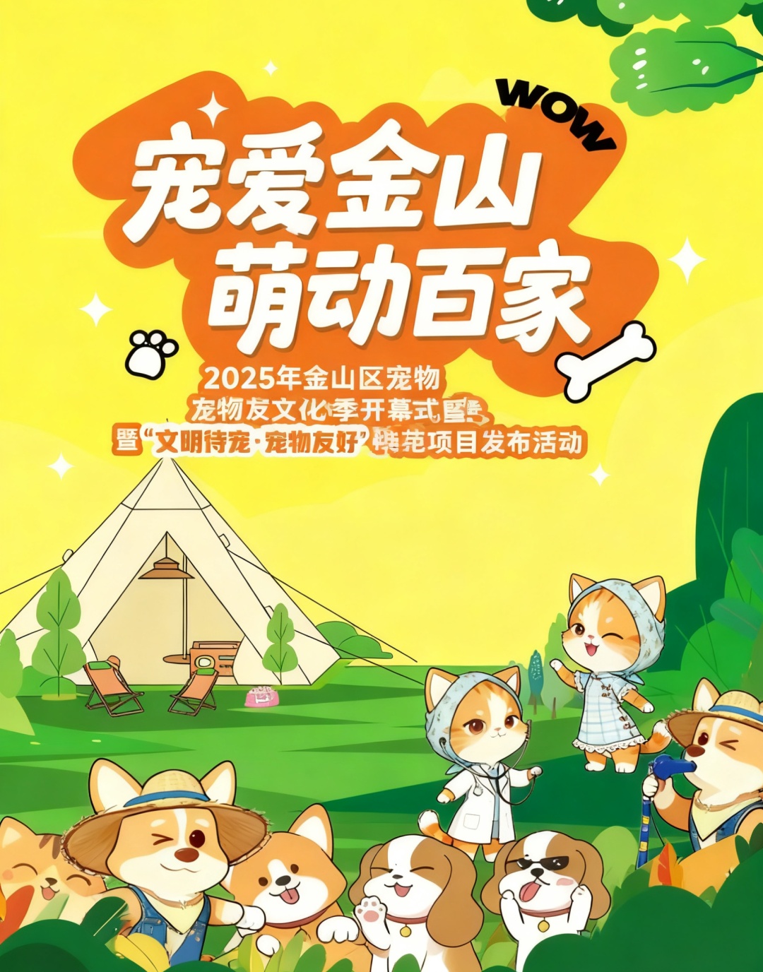 启动仪式暨“文明待宠、宠物友好”发布活动重磅开启。原创歌曲《一起来野》闪耀登场,与毛孩子一起畅游宠物友好村;百家村宠物友好村IP首次亮相,还有金山区特色典范项目发布,一起感受金山这座城市的人宠和谐温度。
