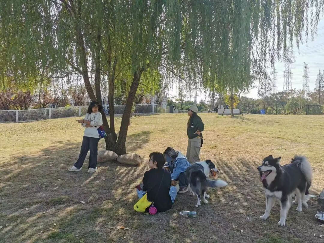 阳光和煦,大黄村公园内市民们有的支起小帐篷,铺开野餐垫,躺进露营椅里享受阳光,有的和自家萌宠玩耍交友,享受自由。一派和谐之景下是文明与自然的和谐共生。