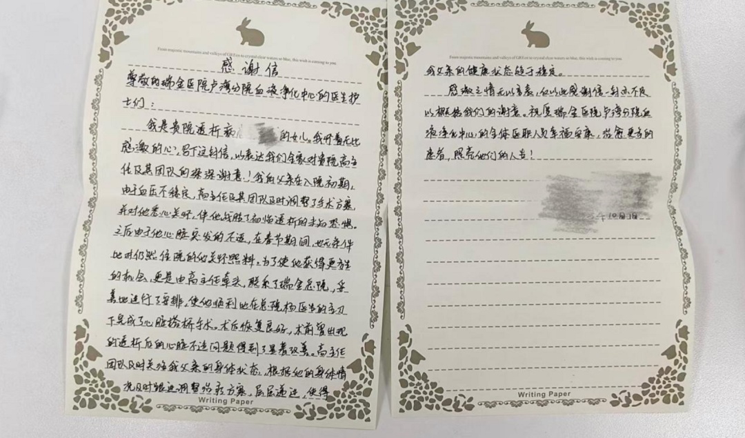 近日,瑞金医院卢湾分院血液净化中心收到一封饱含深情的手写感谢信,信件来自透析病友老封的家人。字里行间,不仅是一个家庭绝处逢生的喜悦,更是一段由瑞金医院卢湾分院开启并全程守护的生命奇迹故事。