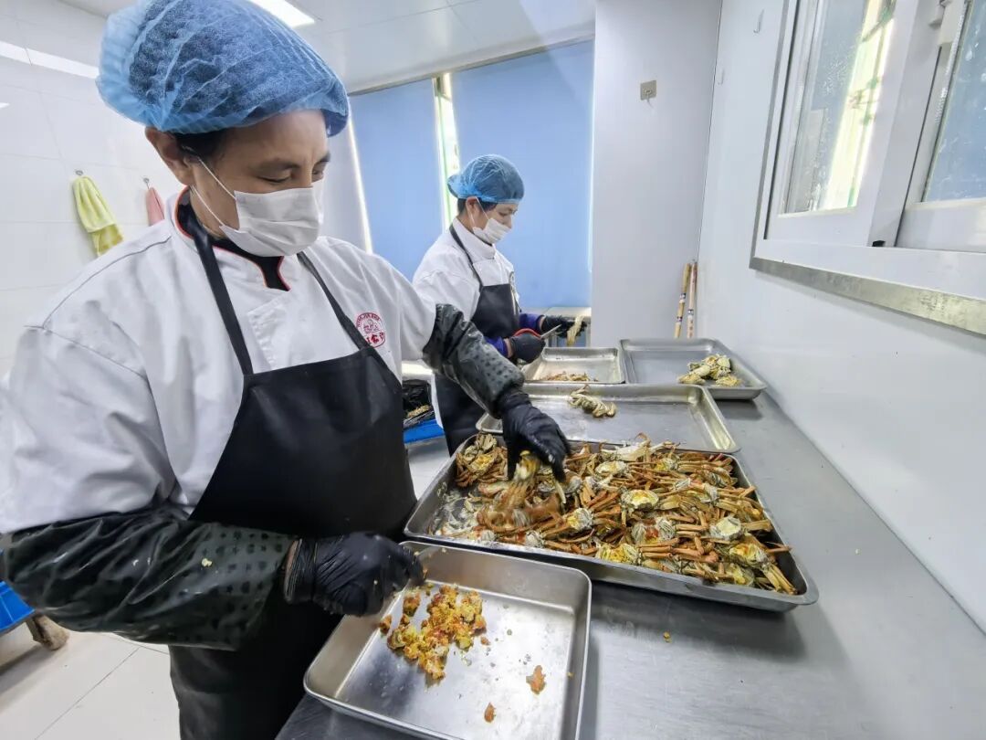 每天150—200斤鲜活大闸蟹,经她们巧手拆解、汇总,最终熬成一锅勾人魂魄的蟹味精华,食客吃到的每一口蟹味都新鲜地道。