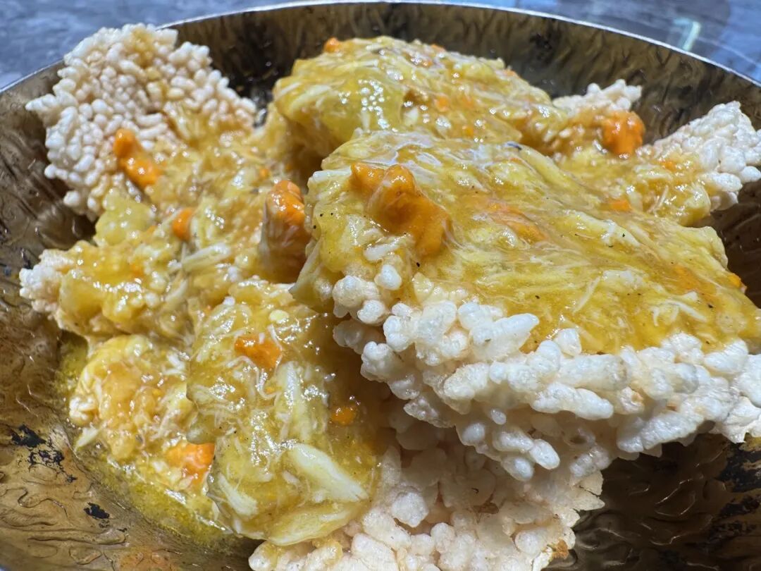 30克鲜香肉酱打底,牢牢锁住肉汁精华,上方再铺25克实打实的现拆蟹粉——公蟹的蟹膏绵密、母蟹的蟹黄饱满,混着蟹脚肉的弹嫩与醇厚蟹油,单独熬煮成馅,一口咬下,蟹香瞬间在口腔里炸开,油润爆浆的口感搭配扎实馅料,每一口都是强烈的味觉冲击,满足感直接拉满。