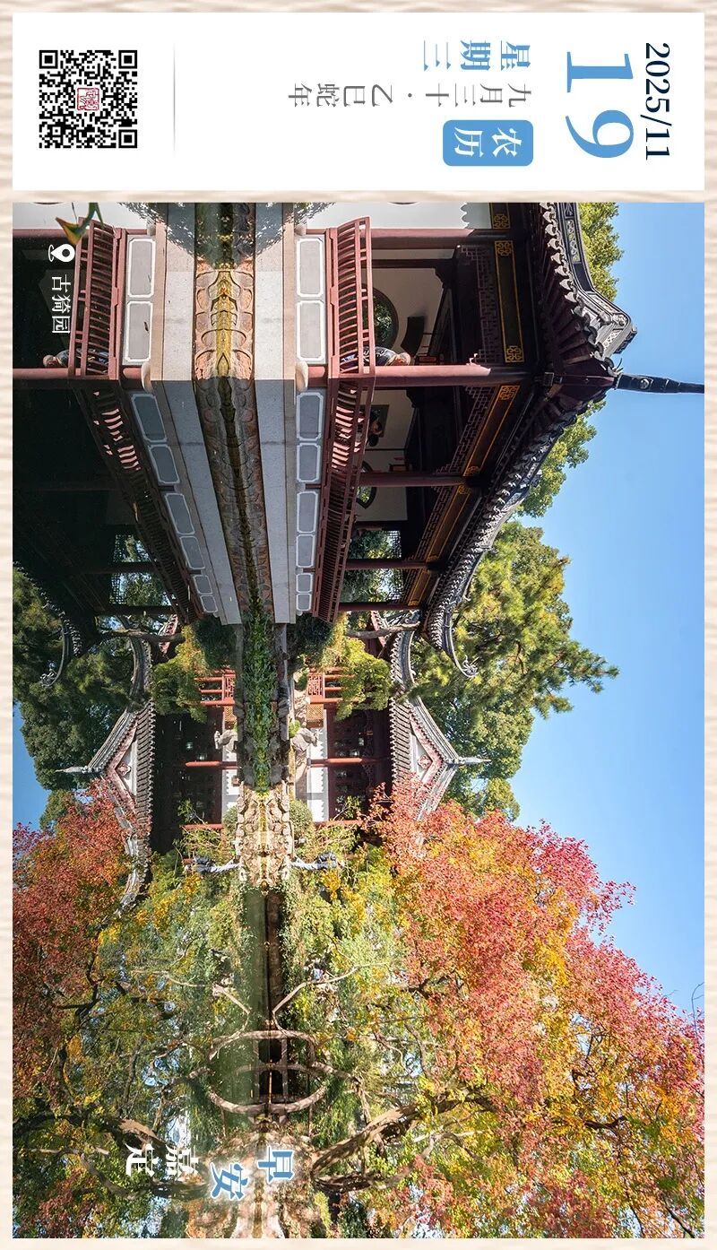 秋的晨曦,轻步迈入古猗园,仿佛踏入了一幅绚烂的画卷。早安!愿你在这静谧的秋色中,体会岁月的深沉与醇厚。