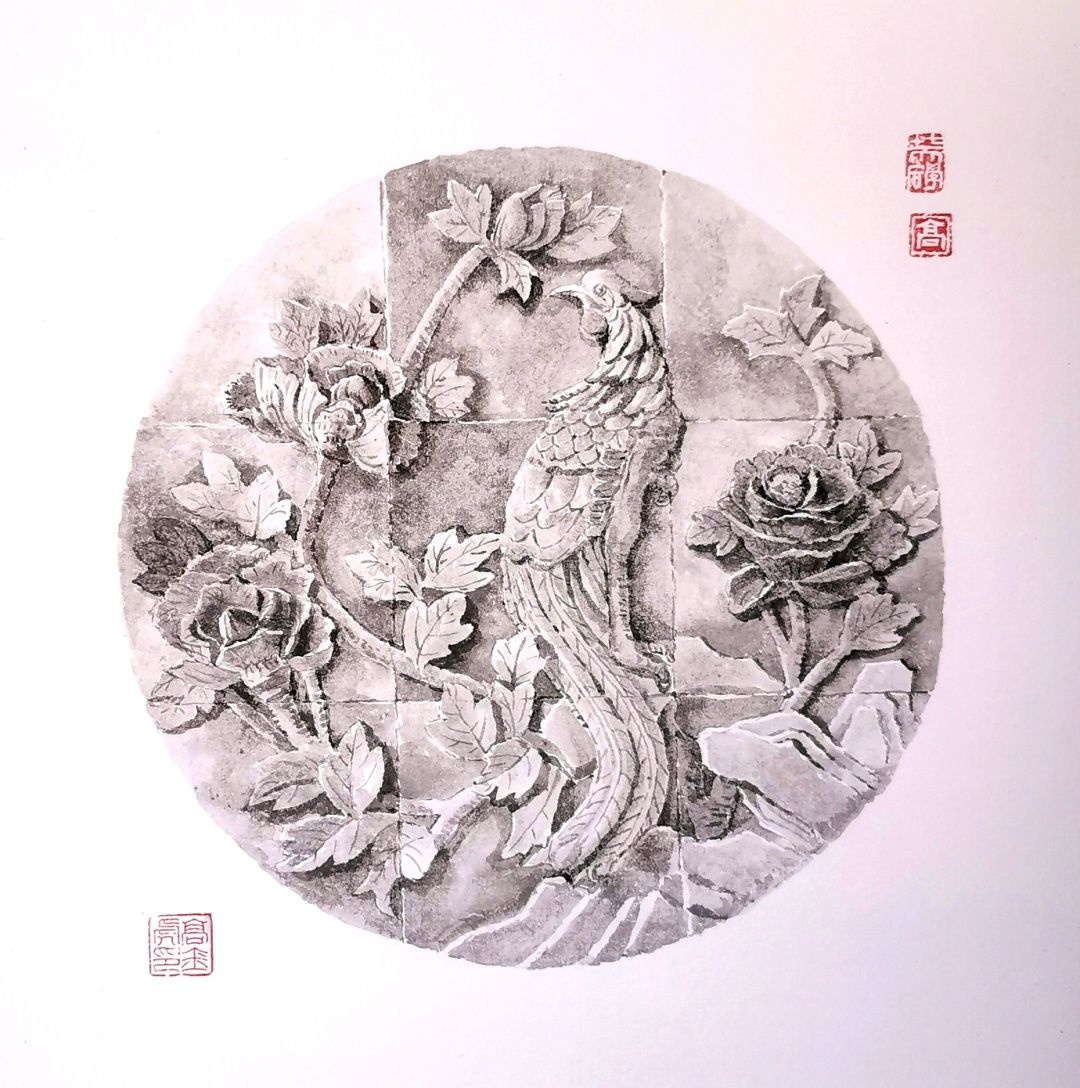 四位参展艺术家各有专攻,作品风格鲜明。1950年生于上海的高金虎,长期致力于传统文化的挖掘与弘扬。在本次展览中,他展出《龙凤呈祥》《福寿双全》等多幅影壁画作,尽显传统绘画的深厚功力。高金虎在采访中表示:“影壁是中国传统建筑中极具特色的元素,融合了民俗与艺术,寄托着人民对美好生活的向往。我希望通过画笔,让更多人了解这些渐被遗忘的文化细节。”他特别提到“有雕必有意,有意必须祥”的传统理念,强调艺术应承载吉祥寓意与文化传承的使命。