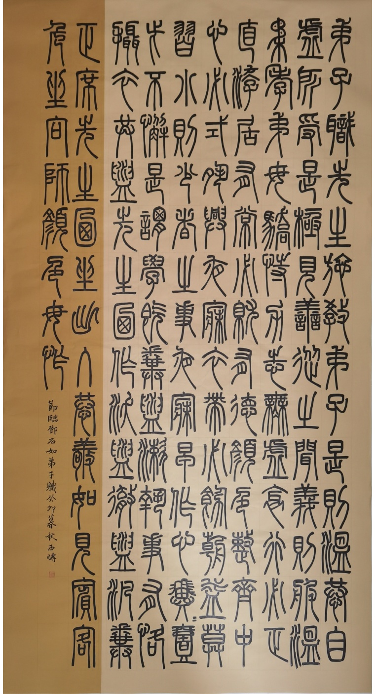青年书法家陈宾则从颜真卿楷书入门,兼修汉隶、小草与篆书,其《临邓石如篆书》《临吴让之篆书》等作品,于古朴匀称中追寻文字源流,尽显笔墨韵味。陈宾表示,对自己而言,书法不仅是技艺的锤炼,更是心灵的修养与文化的溯源,“在笔墨流转间,我深刻感受到中华文化的博大精深。”