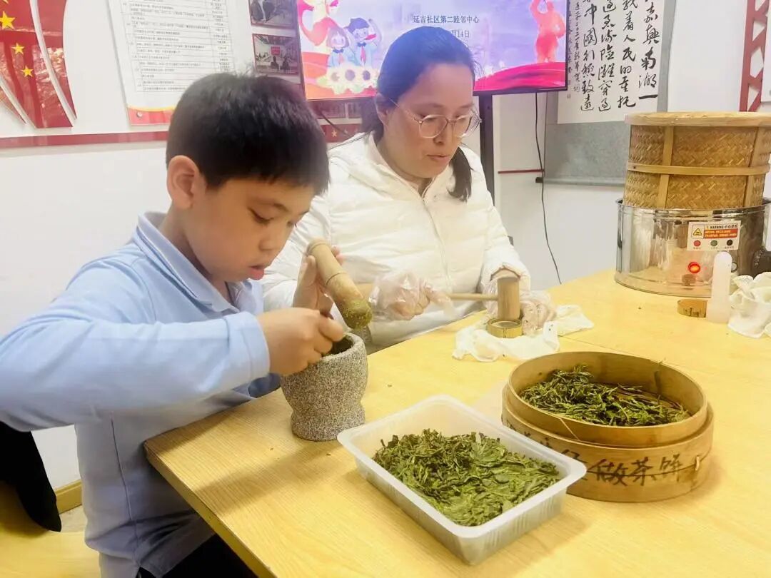 这种感官上的巨大反差与认知重塑,正是这场活动的真正价值所在。为了让城里的孩子不再“纸上谈兵”,延吉社区第二睦邻中心想方设法把“茶山”搬进“社区”,这种打破空间限制的教学方式,让非遗技艺在社区的烟火气中“活”了起来。