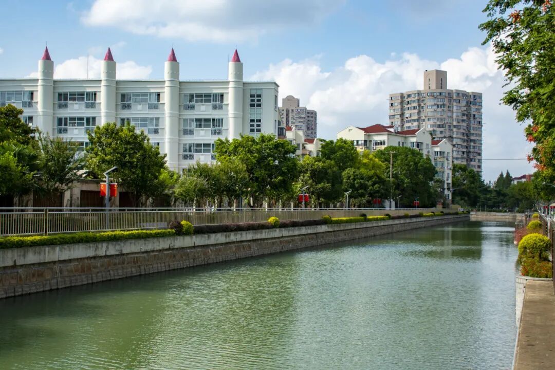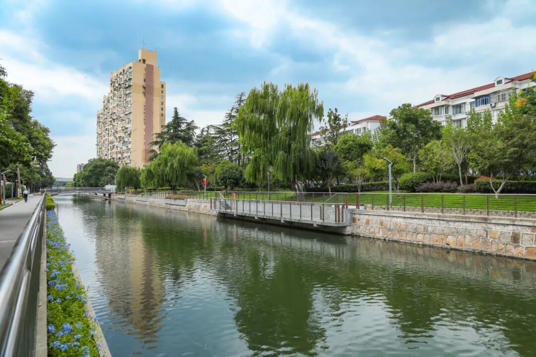 北潮港从梅陇五村、六村、九村小区中穿越而过,将河道与小区围墙有机结合,使居民可以不出小区就享受到水清岸绿的风光,获得独特的亲水感、幸福感。河道北岸则与嘉川路小游园联通,成为周边社区共享的幸福河。