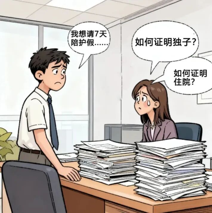 记者就陪护假的问题采访了多家企业单位的HR。一家国企的HR表示,肯定会第一时间批准员工的请假要求,但人事部门纠结的点在于,员工到底需要提供哪些材料,比如——
