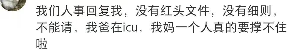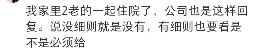 如今,大家对陪护假的讨论重心已转向实际操作。不少网友在社交媒体发帖,表达了自己的困惑:“公司人事给我的回复,没有出台相关文件,没有细则,不能请、无法给这个假。”