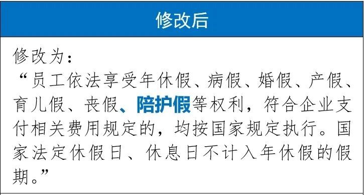 ■修订《员工手册》,增设“陪护假”专门章节,将其明确为一种独立的假期类型,与年休假、病假、事假等并列;