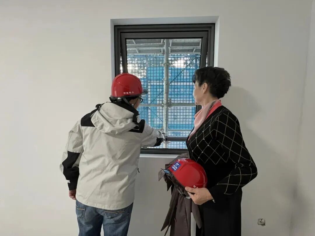 经过近九个月的施工,项目迎来了主体封顶的日子,为了满足居民对新房的期待,施工方邀请原住居民以主人翁的身份走入项目现场,监督项目质量、了解项目建设进展。走进样板间,居民们摸摸墙壁,开开窗户,再看一眼独立的卫生间和厨房,心情异常地激动。“以前都是预制板的,50年房子住下来,这个房子都酥掉了,冬天冷夏天热,你看,现在这房子多好,还是环保材料,防水、隔音多帮我们做好了,进来都不需要什么大装修,政府考虑很周到的,这样我们就也省了钱了。”居民刘阿姨激动地说道。