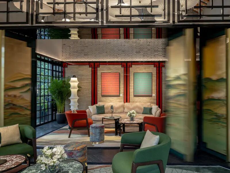 值得一提的是,位于一楼的婚嫁沙龙其灵感源自多水系环绕的上海著名名园——豫园。马赛克地砖由艺术家Pierre Mesguich精心创作,引领宾客步入一方水下秘境。